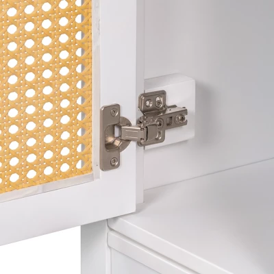 This cabinet comes with soft-closing doors that provide ample storage space, The doors are inlaid with rattan. It looks classic and elegant. It is usually inconvenient for children to use the bathroom cabinet. Because children are not tall enough to reach the sink. The design of the Pull-out footrest solves this problem.