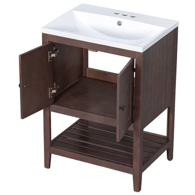 - 【Ample Storage Space】This simple and functional freestanding bathroom vanity comes with cabinets and open shelves for storing bathroom essentials. The cabinets and open bottom shelves are roomy, and both offer plenty of space for most essentials used in the bathroom.