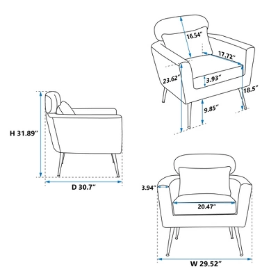 Our chairs feature a soft, premium chenille material supported by golden metal legs for a modern, minimalist appeal. The chair has a minimalist palette and includes a small throw pillow to complement your decor.