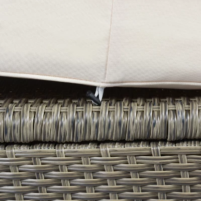 Perfect choice to enjoy leisure time with your friends and family with this 3-piece patio furniture set. Able to accommodate 2-4 people and provide stylish and comfortable lounging to have a conversation with your friends. Crafted with all-weather wicker over rust-resistant steel frame, highly resilient and durable to give you reliable support. The included cushions are filled with high-density sponge, thick and soft to sit on, and the cushion covers are simply water-resistant for easy cleaning. Featuring a stable structure and UV-resistant performance, this patio furniture set is designed for an extended lifespan. Perfect for patio, porch, garden, backyard, balcony, poolside or suitable place in your house.