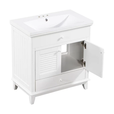 - [Storage Space] Considering the wet environment of the bathroom, this bathroom cabinet has several different storage spaces. Double door cabinet and one drawer underneath. (The top drawer, which cannot be opened, is for decoration.)