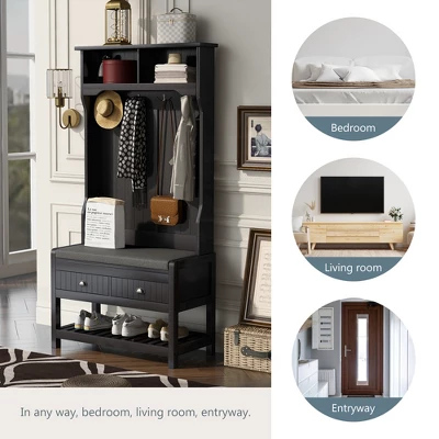 - [Multifunctional] This hall tree has the function of coat rack, shoe cabinet, storage and porch tree, which is very suitable for decorating entrance, hall, foyer, corridor, porch and so on.