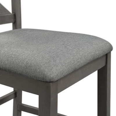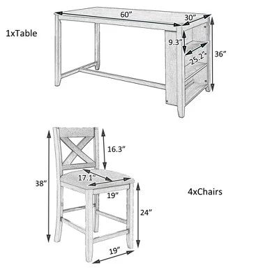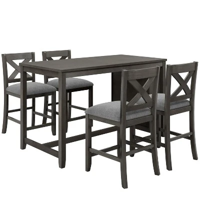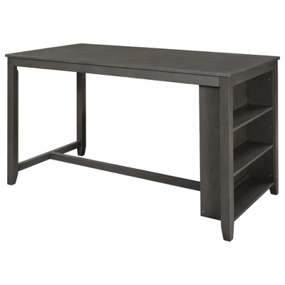 Try this counter height table set when tired of common standard-height ones. In a rustic vintage gray/white finish, there is no doubt that the set will decorate your home with irresistible charm. Come with 4 chairs, this 5-piece dining table set will be a perfect choice for a big family even in small places. All seats for chairs are padded with soft but breathable cushions, which make family or friends dining more relaxing and enjoyable. Worried about lots of odds and ends? Built-in functional storage in this set offers a practical solution for you. With a 3-tier shelf, dishes, bottles, and other stuff have their own places while keeping them in handy.