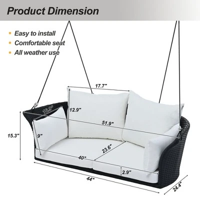 - [All-Weather Use] This woven swing chair is made of high-quality rattan material, which is sturdy and durable. Made of water-resistant and sun-resistant material, it’s perfect for use in all weather conditions.
