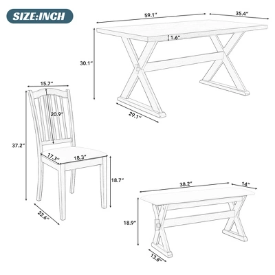 Consisting of 1 dining table, 4 matching chairs, and 1 bench, this 6-piece dining table set can perfectly accommodate your family members within no doubt and can provide a good experience for you and your family to get together. The design takes into account the sense of use and comfort. The spacious and 1.6″ thick tabletop is advantageous to your placement of fruit bowls, vases, candles, etc., and you don’t have to worry about its stability and capacity. Benefiting from its rectangular tabletop and upholstered seating set, this dining set perfectly combines rigidity and softness, which makes its artistic sense stronger. With a surface of a natural ash-wood veneer, the tabletop shows the unique wood grain, thus highlighting unusual texture and flair. Considerate in beautiful lines and retro elements, this dining set reflecting various design aesthetics will bring a rustic-romantic sense to your home.