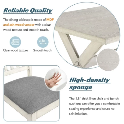 - [Stable & Solid Structure] The dining tabletop is made of MDF and ash-wood veneer with a clear wood texture and smooth touch. As all other parts are crafted of tip-top quality solid rubber wood, needless to say, the dining set featuring excellent durability and stability will serve you for a lifetime.