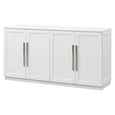 This is the perfect storage solution for clutter, it will keep your living room and kitchen neat and organized. This cabinet has four doors and adjustable shelves for better storage. The simple lines and the unique stripe design of the cabinet combine beauty and practicality, and conform to the aesthetic standards of all ages. Our sideboards are perfect for adding more countertop space to your kitchen, dining room or living room.