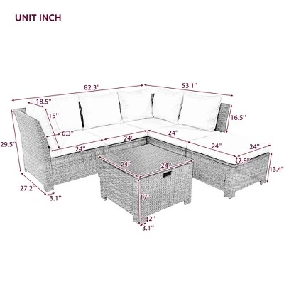 Pieces Included: 2*Corner Chair+2*Single Chair+1*Ottoman+1*Table+5*Seat Cushion+6*Pillow.