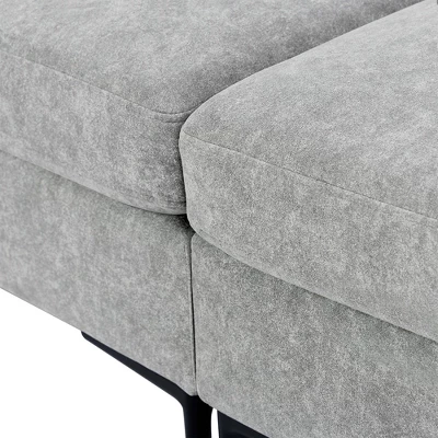 Upgrade your living room with our loveseat, combining style, durability, and comfort. The sturdy frame, iron legs, and wrapped armrests make it a reliable and stylish choice for your home. The sofa features armrests and cushions with piped edges design, adding a stylish touch and preventing discomfort from sharp edges. Enjoy the perfect balance of comfort and aesthetics with our thick seat cushions and moderate armrest width. The sofa is designed to comfortably accommodate 2-3 people, providing ample space for you and your guests to relax and unwind. Experience the ultimate relaxation with our exceptional sofa today.