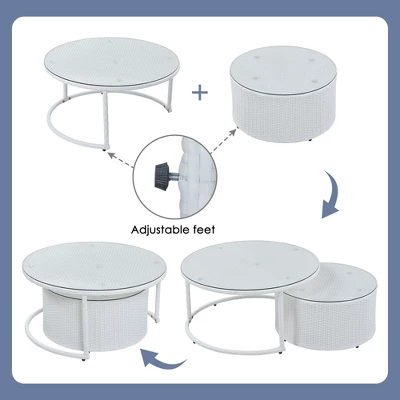 - [Unique Design] This wicker sofa set has two free overlapping tables and rare white wicker elements, making it the perfect addition to any outdoor space.