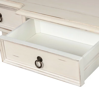 This classic accent table fits perfectly in any living room. Constructed with a solid wood frame and legs with a beautiful distressed finish. It is ensured to be stable, strong and requires low maintenance through long years of use. Features 3 big functional drawers and a fixed lower shelf and a long enough tabletop, this occasional console sofa table helps you to organize your living room necessities, keeping them dust free. What a stylish piece of console table set to elevate your living room or foyer entryway space!