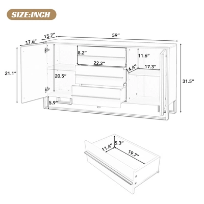 Overall Dimension: 59″W x 15.7″D x 31.5″H.
