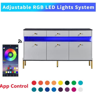 This dresser has 3 drawers and 6 shelves to keep you organized and save your space. Top panels with marble patterns are suitable for many furniture styles. Metal feet ensure the cabinet does not wobble during use. Modern style and versatility for many occasions.