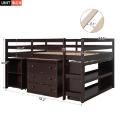 L-Shaped Twin Over Full Bunk Bed With Twin Size Loft Bed,Built-in Desk And Slide, Black – ModernLuxe