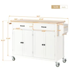 54.3 Inch Width Kitchen Island Cart With Solid Wood Top, 4 Door Cabinet, Two Drawers, Spice Rack And Locking Wheels-ModernLuxe