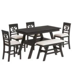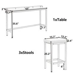 Modern 4-Piece Counter Height Extra Long Bar Kitchen Set With 3 Fabric Stools, Gold+Beige-ModernLuxe