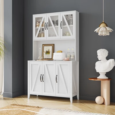 - 【Large Storage Capacity】This wood kitchen storage has 6 hidden compartments, the large middle area is perfect for storing bulky supplies. Ample storage space meets your daily needs.