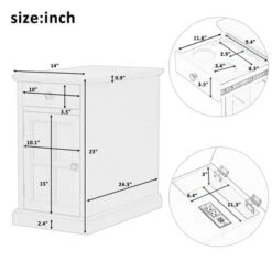 Classic Vintage End Table With USB Ports And A Multipurpose Drawer With Cup Holders – ModernLuxe