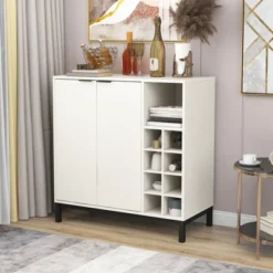 Modern Sideboard, Buffet Storage Cabinet With Tempered Glass Doors And Adjustable Shelves-ModernLuxe