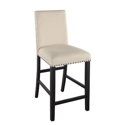 - [Ergonomic Fabric Upholstered Seating] The beige fabric upholstered counter height chairs feature slightly curved backrests for ergonomic support while the seats are filled with plush fire-proof sponge. 4 base wooden spindles offer reinforced support and solid stability.