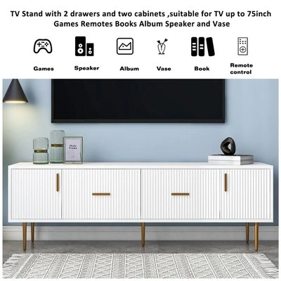 - [Stylish] Featuring a sleek design and 5 champagne legs, this contemporary TV Stand adds a modern and fresh touch to your living room.