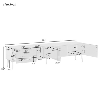 TV Stand: 16.1” H x 13.8” W x 70.9” D.