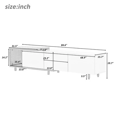 TV Stand: 19.7”H x 15.7”W x 84.6”D.