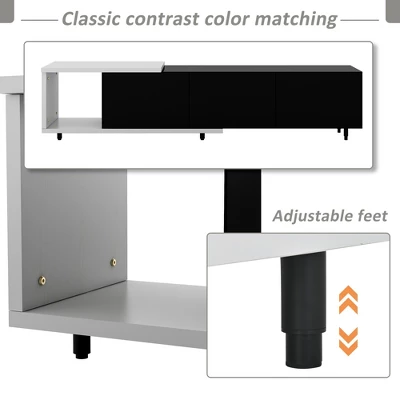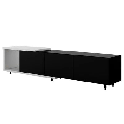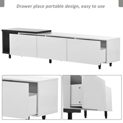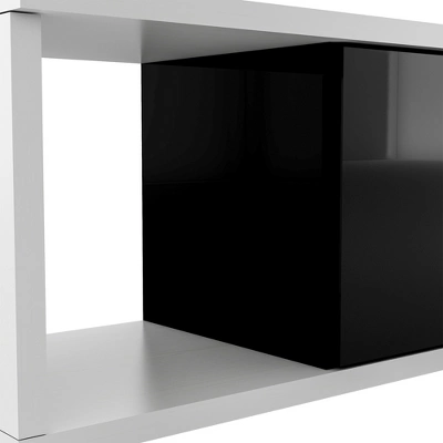 This TV stand brings elegance and modernity to your living room. Particle board with a clean-lined silhouette in black & white lacquered hue fits into your existing arrangement easily. Designed with a smooth and wear-resistant tabletop, this functional TV stand provides plenty of space for the TV screen and decorative accents, while it features 3 large drawers for internal storage, offering extra and flexible storage space. Stylish, functional, and high-quality, this TV stand is a wise choice for your home furnishings needs.