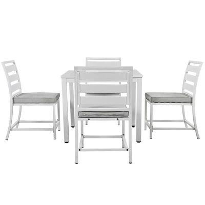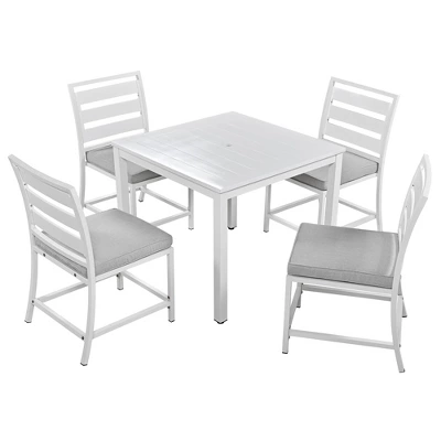 - [Unique Design] What makes this dining set unique is that the combination of steel and acacia wood creates a modern look that suits a variety of styles. Clean lines and a simple design give it a contemporary feel that enhances the look of any outdoor space.