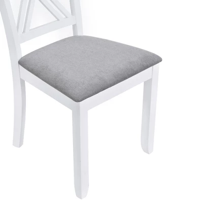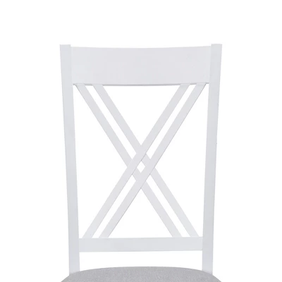 - [X-Back Dining Chairs] Built with a traditional cross back, this dining chair set provides a classical combination to your dining room. Refreshing white and gray color gives your space a rustic aesthetic.