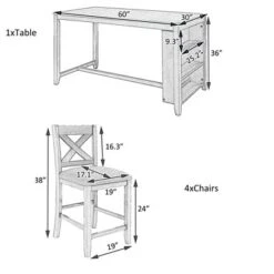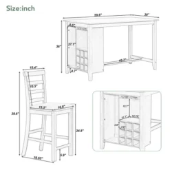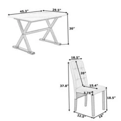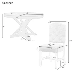 5 PCS Round Dining Table Set With Solid Wood Legs And 4 Striped Fabric Upholstered Chairs-ModernLuxe