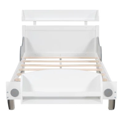 If you are looking for an eye-catching bed, this car-shaped bed with an appealing race car design will be perfect for your bedroom. There are two storage shelves on the headboard and footboard, which is a good place to store toys, books, etc. Comfortable, functional, and aesthetically pleasing, this bed is designed to ensure comfort and maximum safety for you. Crafted from high-quality materials, this bed has a strong construction. This bed comes with rails on both sides to prevent you from falling out of the bed. The sturdy slats offer the needed support and can withstand daily wear and tear.