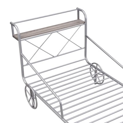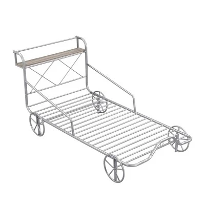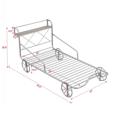 With its attractive automotive design and solid metal construction, this bed will be a real eye-catcher in your bedroom. This bed is very comfortable and functional while looking cool. There is a shelf at the end of the bed, supported by a solid X-shaped metal structure, which is very secure. Made of selected high-quality steel, this car-shaped bed is extremely strong and durable. There are sturdy rails on both sides of the bed to ensure your sleep safety.