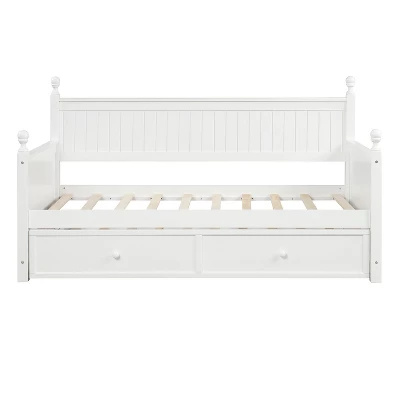 - 【Stable and classic bed frame】Solid Pine with square posts make the daybed extremely sturdy and rugged. Pine wood frame adds sturdiness and durableness. The strong legs and wide boards can not only improve the weight capacity but also increase its stability.